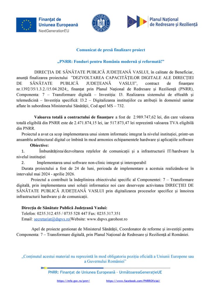 Comunicat de presa finalizare proiect